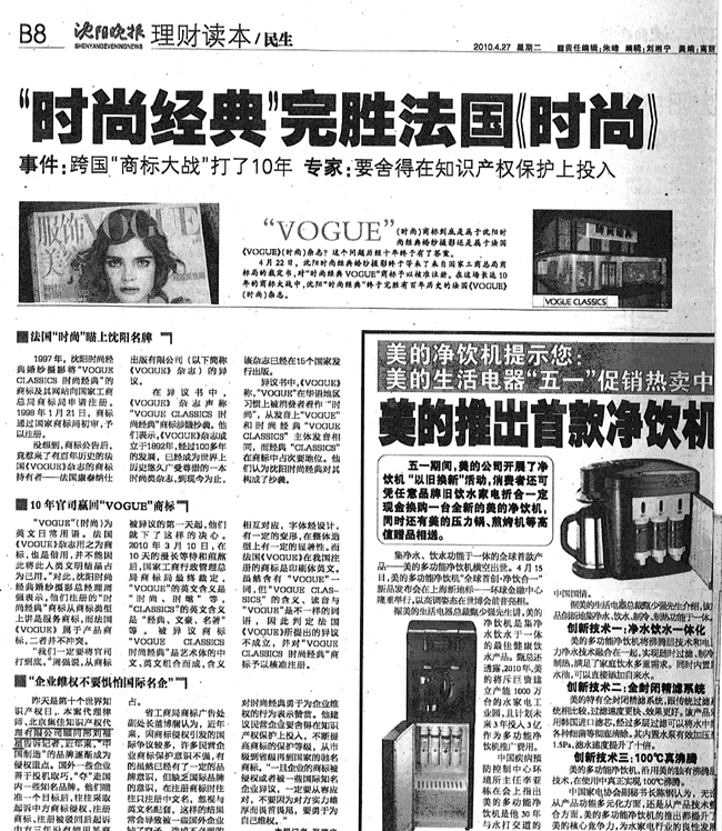 《沈陽(yáng)晚報(bào)》:“時(shí)尚經(jīng)典”完勝法國(guó)《時(shí)尚》