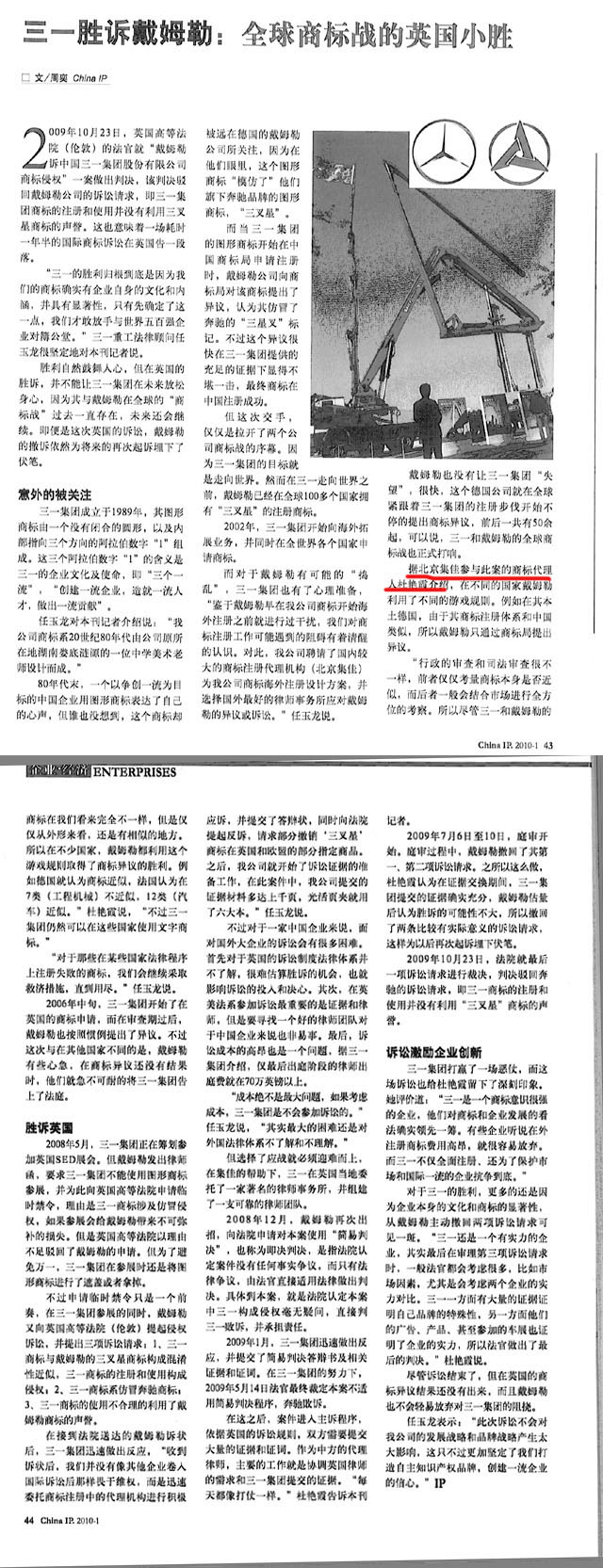 《China IP》:三一勝訴戴姆勒:全球商標(biāo)戰(zhàn)的英國小勝