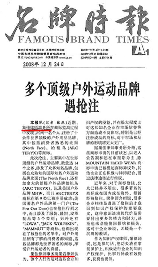 《名牌時(shí)報(bào)》:多個(gè)頂級戶外運(yùn)動品牌遇搶注