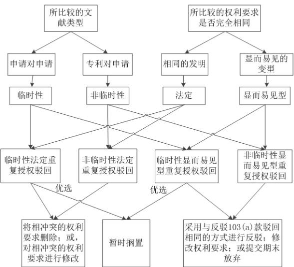 綜上,為了使得上述內容更容易理解,筆者制作了用于克服美國重復授權駁回的答復策略的示意圖(如圖1所示)。