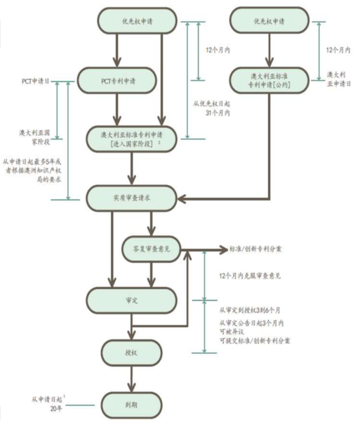 標(biāo)準(zhǔn)專利:可以通過PCT/CP提交澳大利亞標(biāo)準(zhǔn)專利新申請,并在5年內(nèi)提出實(shí)質(zhì)審查(PCT從PCT國際申請日起算,CP從澳大利亞申請日起算)。在收到第一次審查意見后12個(gè)月內(nèi)克服所有缺陷,克服缺陷后進(jìn)入審定,審定后3-6個(gè)月授權(quán)。標(biāo)準(zhǔn)專利保護(hù)期限是20年(藥物、藥品專利保護(hù)期限為25年)。