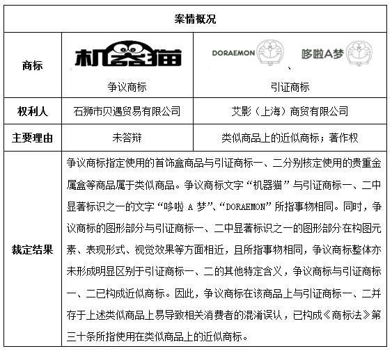 二、從“機(jī)器貓”無(wú)效宣告案看商標(biāo)近似
