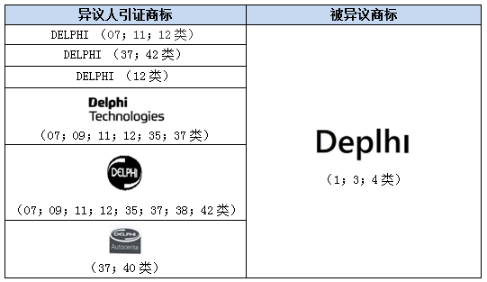 一名土耳其個人申請了“DEPLHI”第1;3;4類商標,指定使用在第1類化學品、第3類漂白、清潔劑和第4類工業用油、粘合劑等商品上。DELPHI TECHNOLOGIES IP LIMITED公司對該商標提起異議,異議人并無第1;3;4類在先商標,而是基于其他類別上在先注冊的“DELPHI”商標,援引土耳其《工業產權法》第6條第1款“混淆誤認”和第6條第9款“惡意”條款進行異議。雙方商標情況如下: