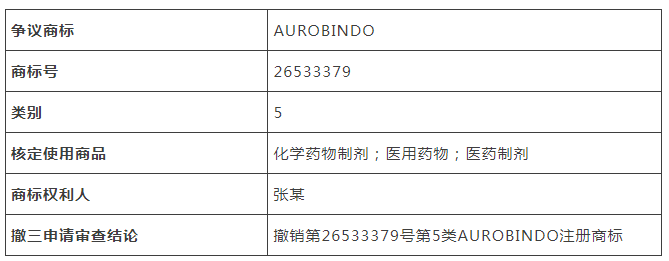 跨國企業(yè)A公司進(jìn)入中國市場的過程中將其長期使用的標(biāo)志AUROBINDO在中國申請注冊商標(biāo),于2021年12月提出注冊商標(biāo)申請,國家知識產(chǎn)權(quán)局經(jīng)審查后決定駁回注冊申請,理由是該商標(biāo)與自然人張某在類似商品上已注冊的第26533379號“AUROBINDO”商標(biāo)近似。面對自有商標(biāo)在國內(nèi)被搶注的情況,A公司隨即向國家知識產(chǎn)權(quán)局商標(biāo)局提交撤銷三年不使用申請,申請撤銷張某名下第26533379“AUROBINDO”商標(biāo)在第5類“化學(xué)藥物制劑;醫(yī)用藥物;醫(yī)藥制劑”等全部核定使用商品上的注冊。同時A公司于2022年3月申請駁回商標(biāo)注冊申請復(fù)審,以引證商標(biāo)處于撤三之中,其權(quán)利狀態(tài)不確定為由請求對本案予以緩裁。2022年9月,國家知識產(chǎn)權(quán)發(fā)文通知撤銷張某名下第26533379“AUROBINDO”商標(biāo)。此外,A公司也在其他與公司業(yè)務(wù)相關(guān)的商品類別上申請注冊“AUROBINDO”商標(biāo),完善其在中國商標(biāo)布局。目前A公司在第5類“醫(yī)藥制劑;醫(yī)用藥物;補藥;藥用化學(xué)制劑;醫(yī)用化學(xué)制劑;針劑;原料藥;生化藥品;片劑”申請的“AUROBINDO”商標(biāo)已成功注冊。