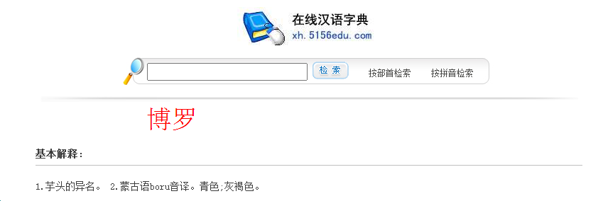 “博羅”除了是縣級(jí)以上行政區(qū)劃名稱外,本身也是固有詞匯,其含義為“1.芋頭的異名。2.蒙古語(yǔ)boru音譯。青色;灰褐色”。