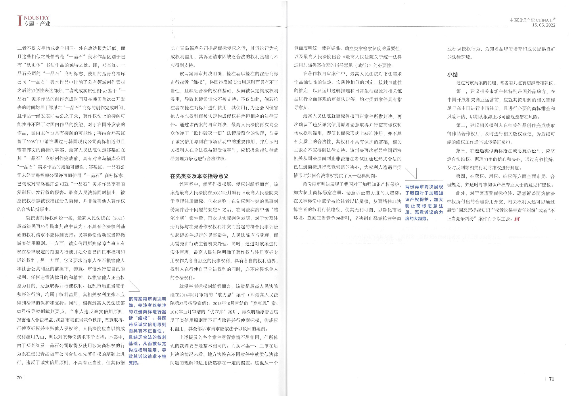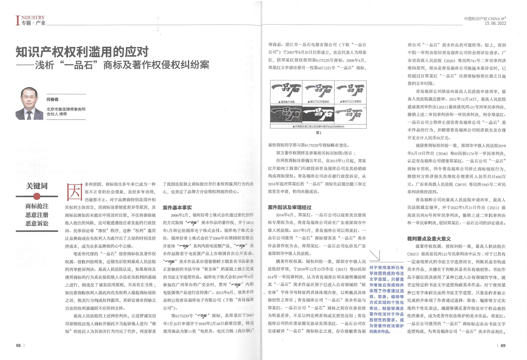 集佳文章《知識產權權利濫用的應對——淺析“一品石”商標及著作權侵權糾紛案》在《中國知識產權》發表