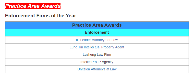 Asia IP專注于亞太地區知識產權領域的動態與發展,在業內具有非常高的權威性。Asia IP每年通過問卷調查、核心客戶咨詢等方式匯集世界各地知識產權專業人士的反饋和建議,并最終評選出亞太地區年度領先的優秀知識產權事務所及頂級專家,其評選結果對企業在亞太地區開展知識產權事務具有重要的參考和指導意義。