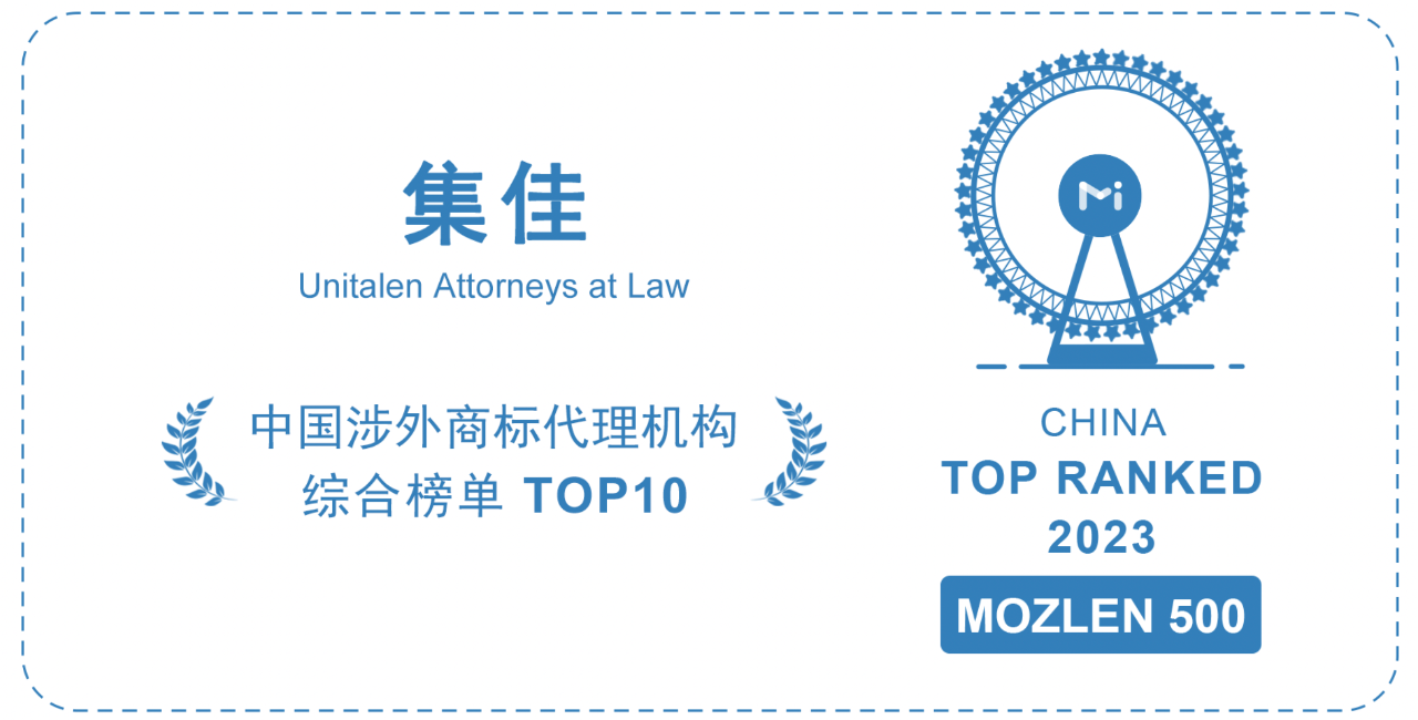 Recently, Mozlen, a leading trademark AI retrieval and management platform in the industry, released the Global List "MOZLEN 500" of China Foreign-related Trademark Agencies. Among nearly 20,000 trademark agencies registered with the CNIPA, Unitalen ranked TOP 10 in the "Comprehensive Ranking of China's 500 Foreign-related Trademark Agencies" and was rated AAA+++ (the highest level) by virtue of its outstanding experience in trademark agency for international clients, comprehensive strength in business and international influence, performed outstandingly in business rankings in many key countries and received important recommendations (Japan, UK, South Korea, Singapore, British Virgin, Spain, Ireland, Brazil, Qatar).