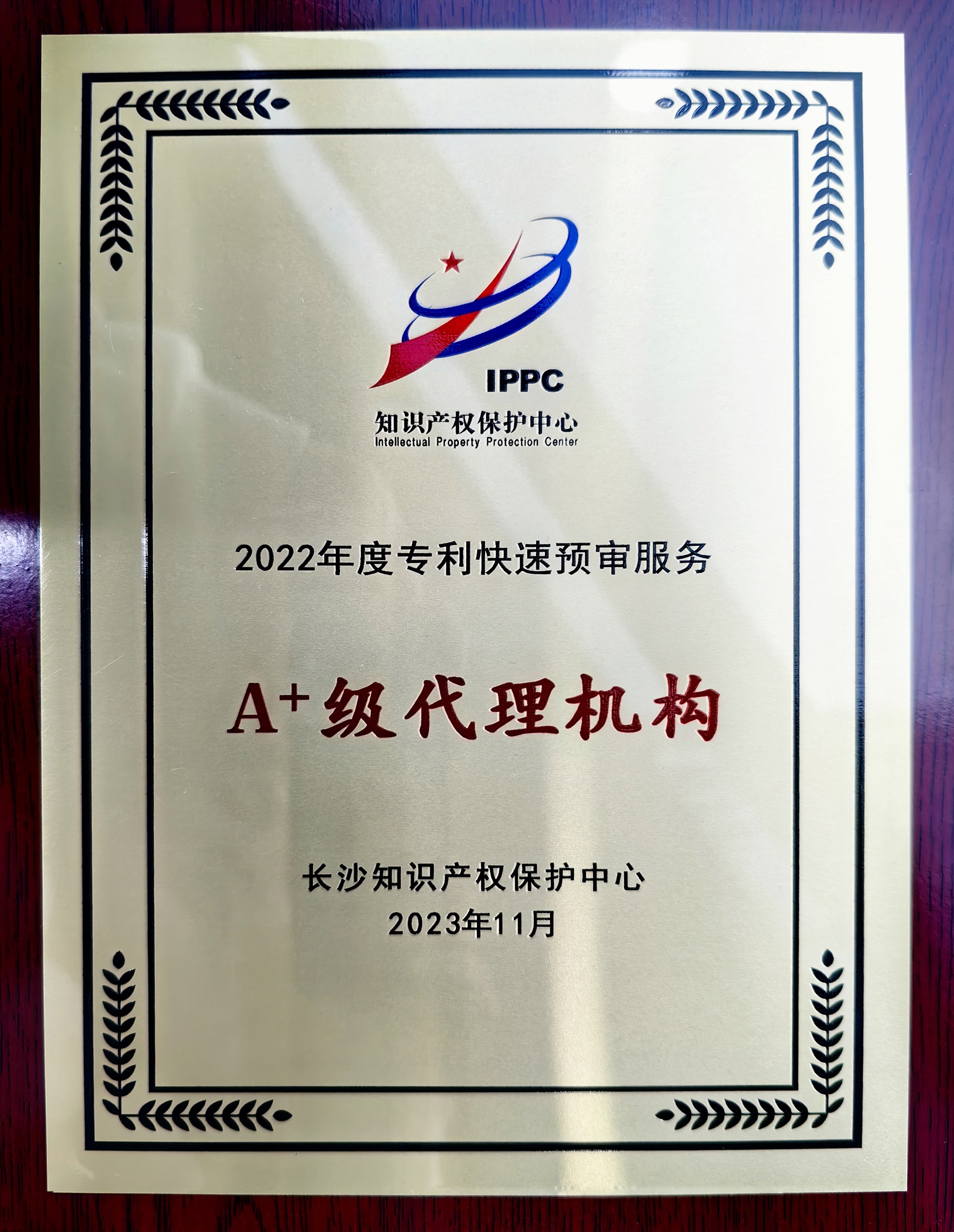 為了更好地激勵先進,推動長沙市專利預審工作不斷優化升級,近期,長沙知識產權保護中心對備案主體和專利代理機構分別開展了分類分級評價工作。集佳憑借優質的專利代理服務,獲評為“A+級專利代理機構”,并在11月15日長沙知識產權保護中心舉辦的“2023企業知識產權精英人才訓練營”開班儀式上獲頒榮譽獎牌。
