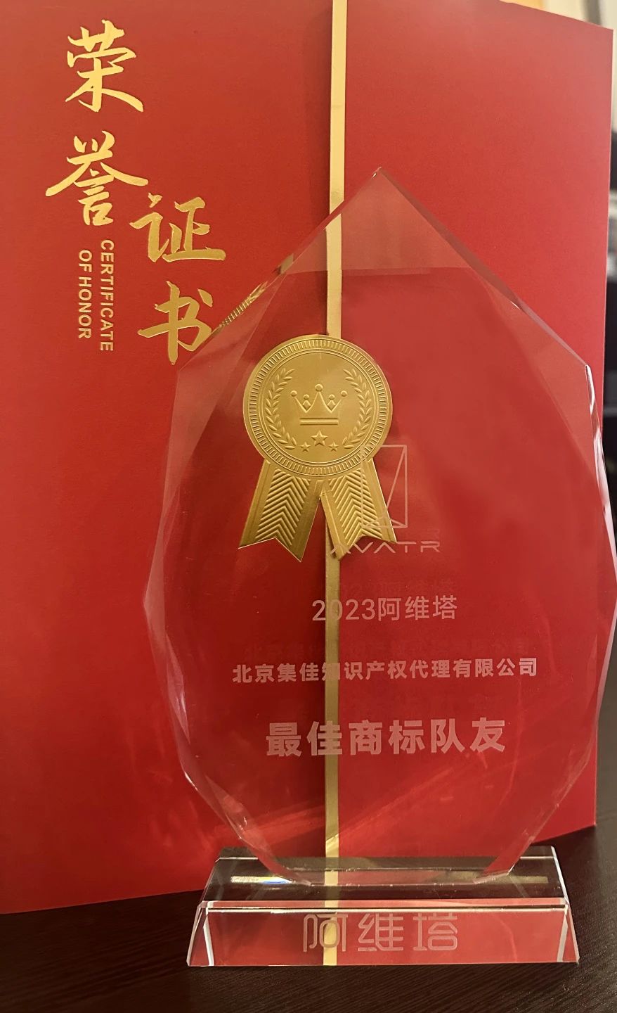 近日,集佳優質服務再次喜獲客戶點贊——阿維塔科技(重慶)有限公司(以下簡稱“阿維塔”)授予集佳2023年度“最佳商標隊友”榮譽稱號。