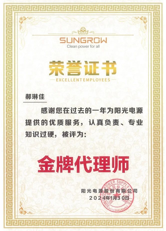 集佳喜獲客戶陽光電源授予“優秀合作伙伴”榮譽稱號