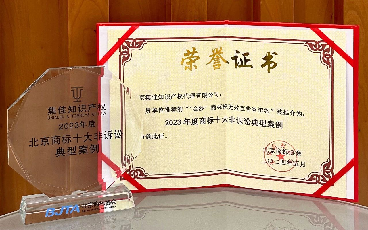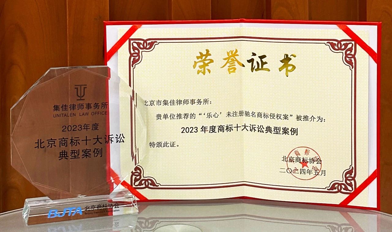 集佳代理2個案例入選北京商標協會2023年度商標十大訴訟與非訴典型案例
