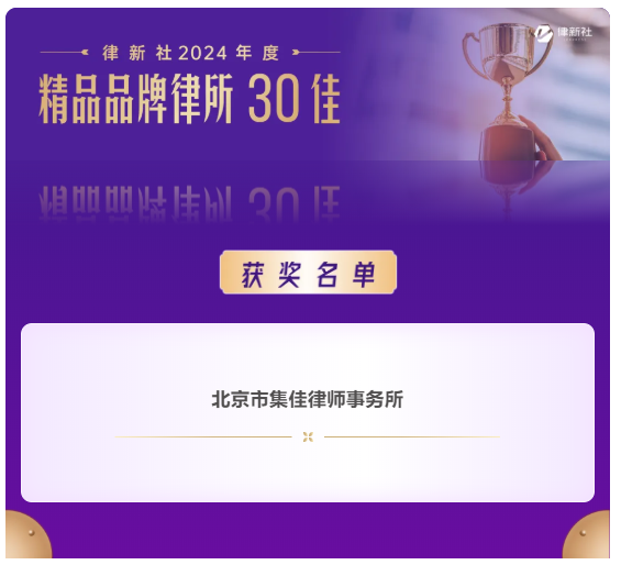 集佳律所入選律新社2024年度“精品品牌律所30佳” 集佳代理案例獲評“律新社2024年度標桿案例”